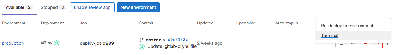 If you deploy to your environments with the help of a deployment service (for example, the Kubernetes integration), GitLab can open a terminal session to your environment. You can then debug issues without leaving your web browser.